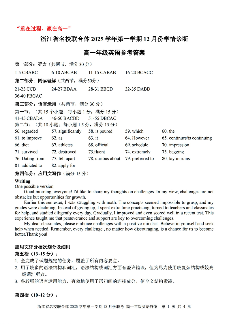 浙江省名校联合体2025学年高一上学期12月联考 英语答案.pdf