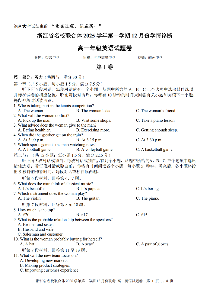 浙江省名校联合体2025学年高一上学期12月联考 英语.pdf