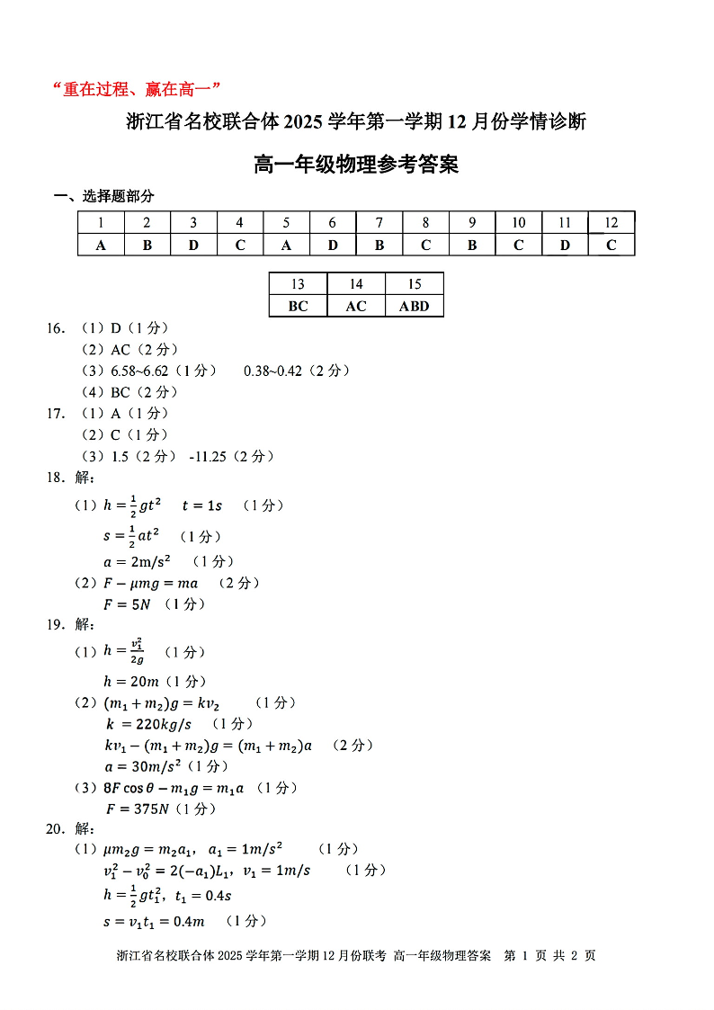 浙江省名校联合体2025学年高一上学期12月联考 物理答案.pdf