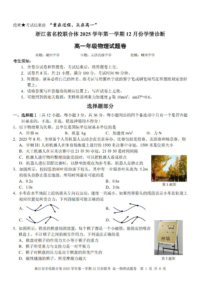 浙江省名校联合体2025学年高一上学期12月联考 物理.pdf
