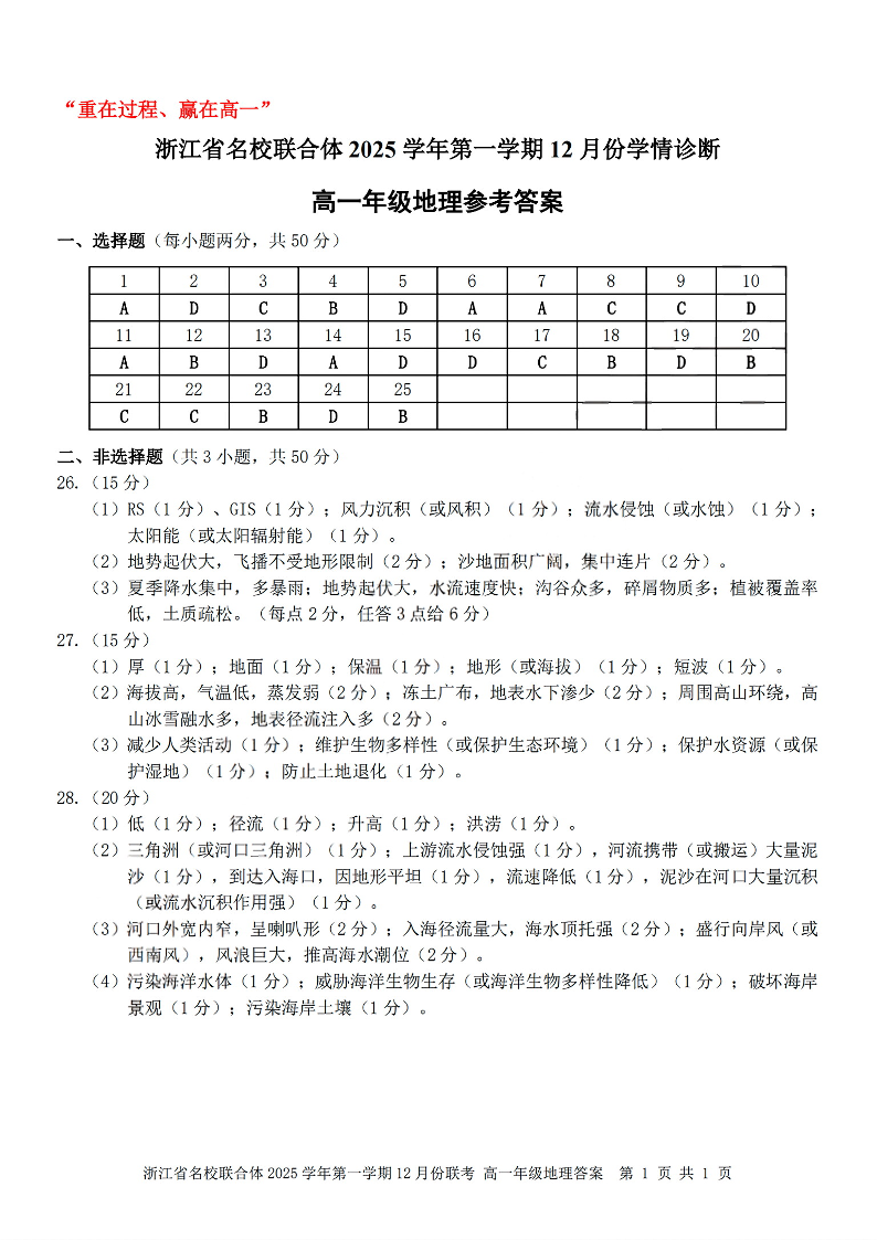 浙江省名校联合体2025学年高一上学期12月联考 地理答案.pdf