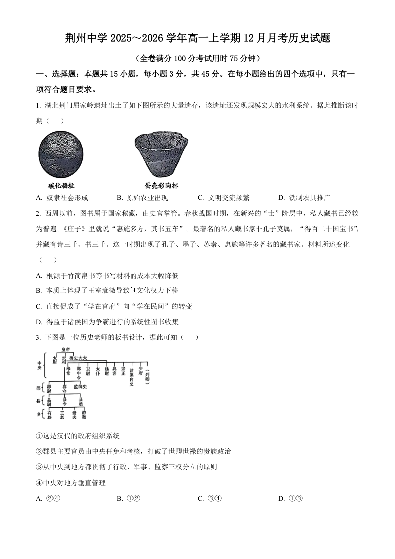 湖北省荆州中学2025-2026学年高一上学期12月月考 历史.docx