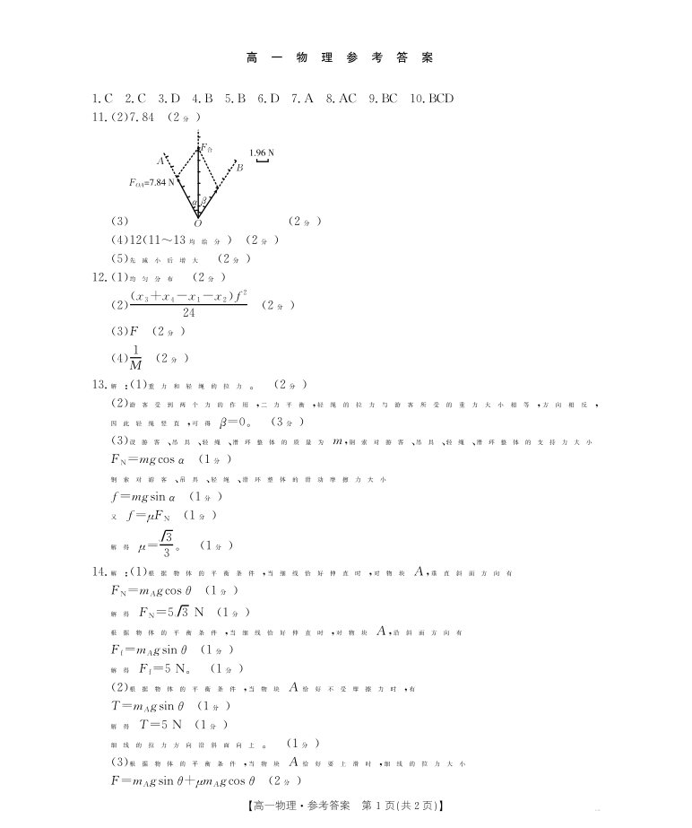 广东省2025-2026学年高一上学期12月联考 物理答案.pdf