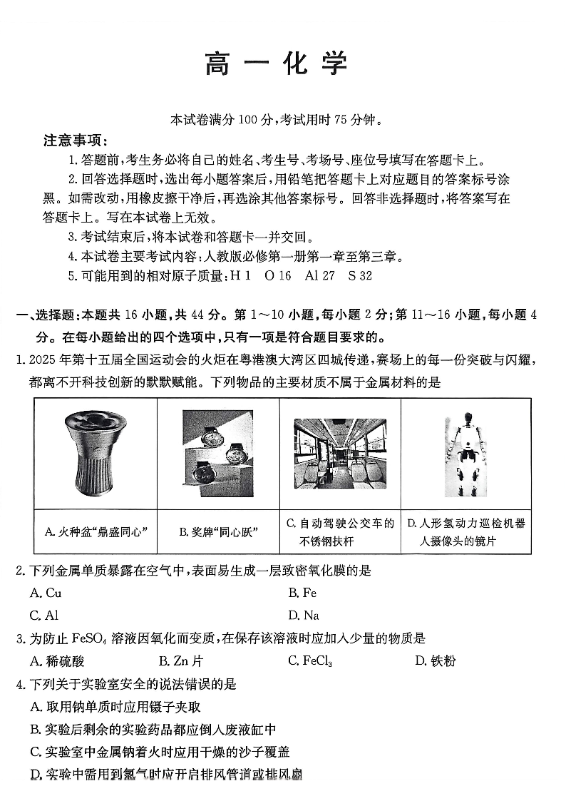 广东省2025-2026学年高一上学期12月联考 化学.pdf