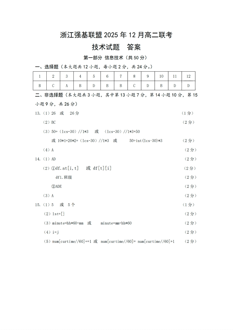 浙江省强基联盟2025年12月高二联考 技术答案.pdf