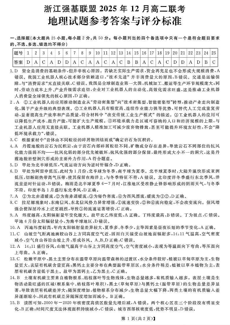 浙江省强基联盟2025年12月高二联考 地理答案.pdf