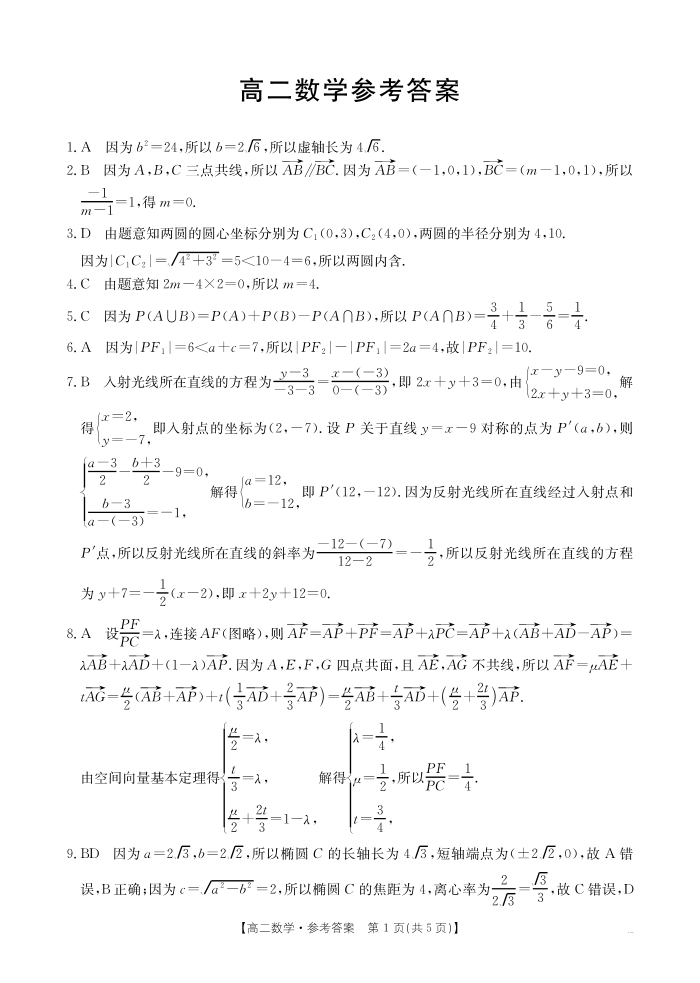 广东省2025-2026学年高二上学期H7联盟考 数学答案.pdf