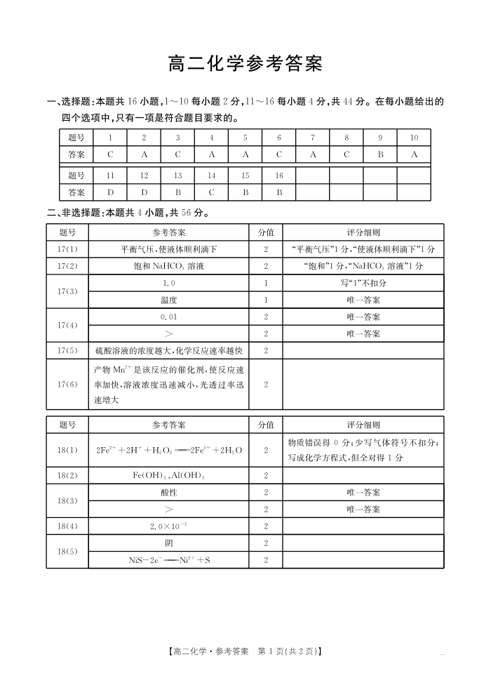 广东省2025-2026学年高二上学期H7联盟考 化学答案.pdf