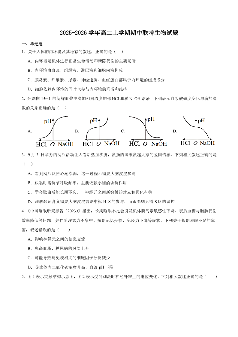 福建省福州市八县(市)协作校2025-2026学年高二上学期期中联考 生物试题(含答案).docx