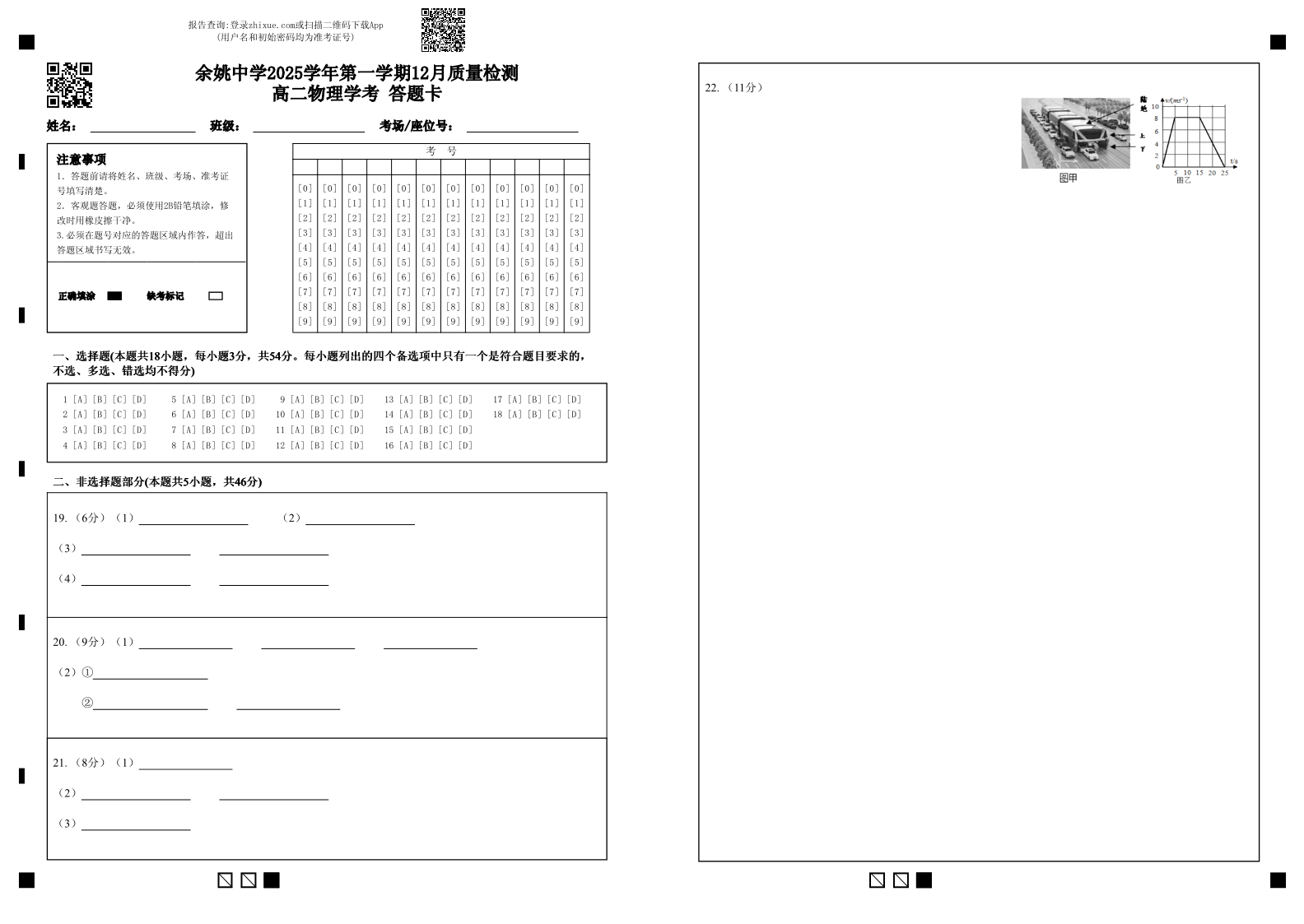 余姚中学2025学年第一学期12月质量检测 高二物理答题卡.pdf