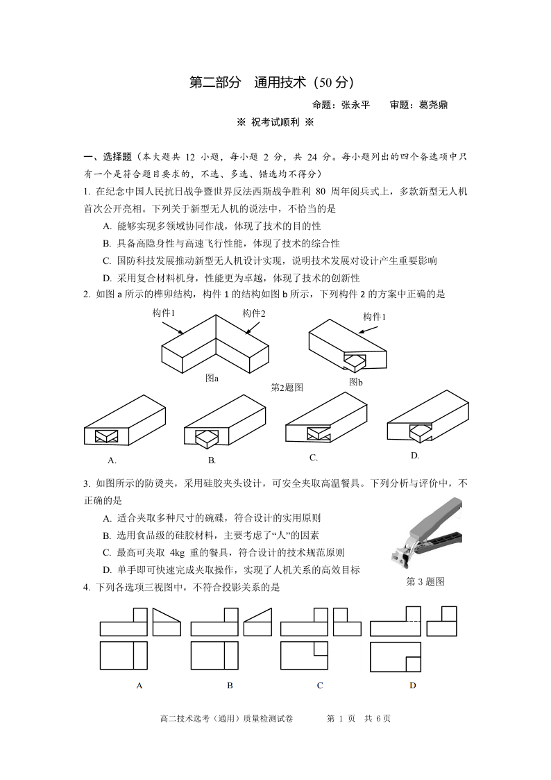 余姚中学2025学年第一学期12月质量检测 高二通用技术.pdf