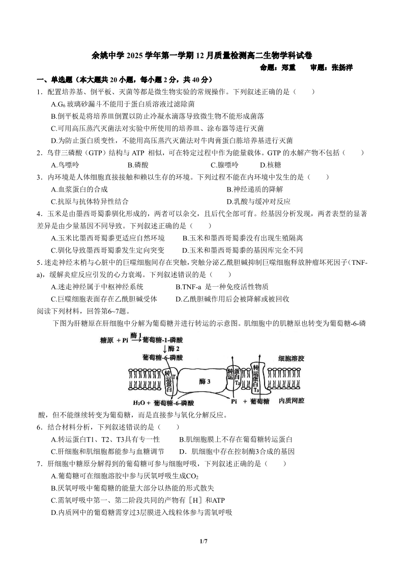 余姚中学2025学年第一学期12月质量检测 高二生物.pdf