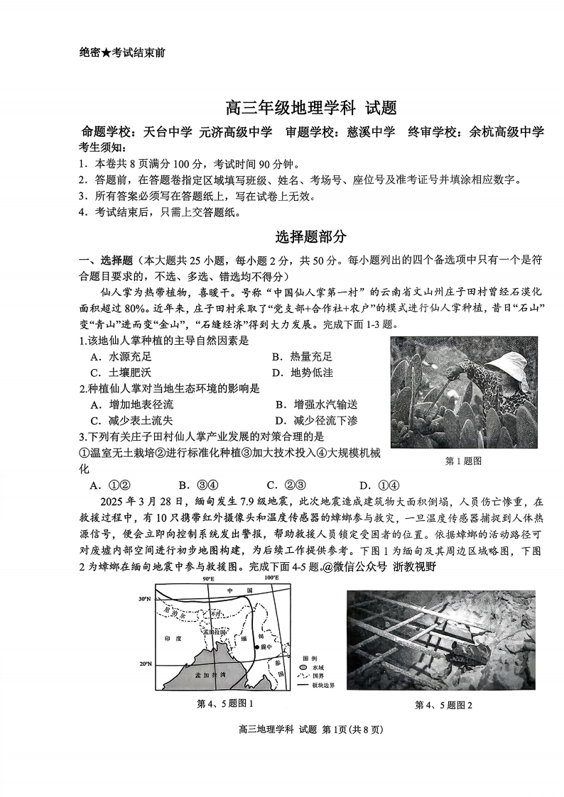 地理试题|26届北斗星盟12月联考.pdf