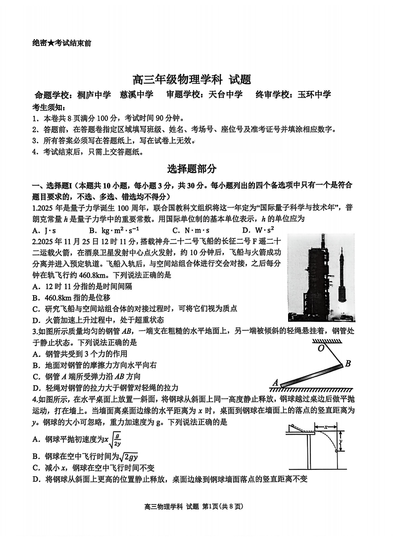 物理试题|26届北斗星盟12月联考.pdf