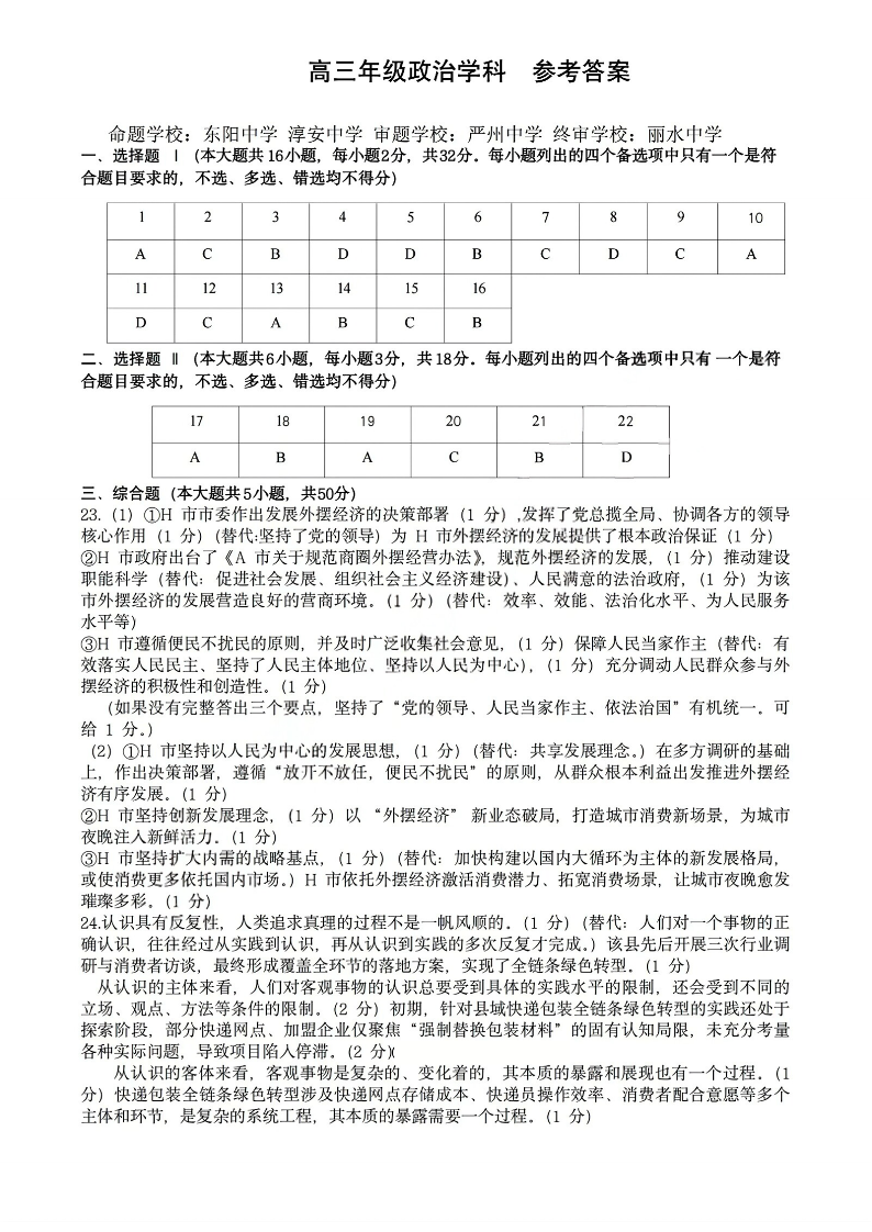 政治答案|26届北斗星盟12月联考.pdf