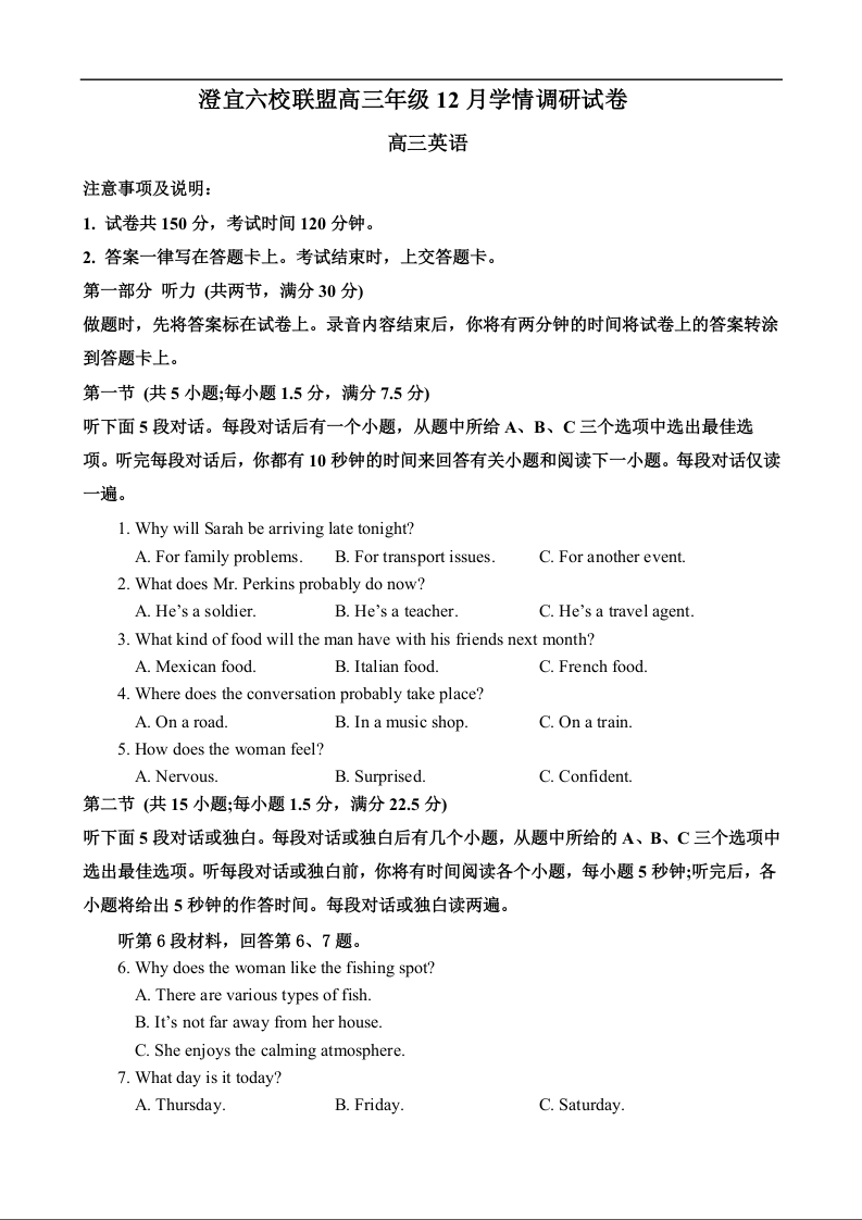 无锡市澄宜六校联盟2025-2026学年高三年级12月学情调研 英语.docx