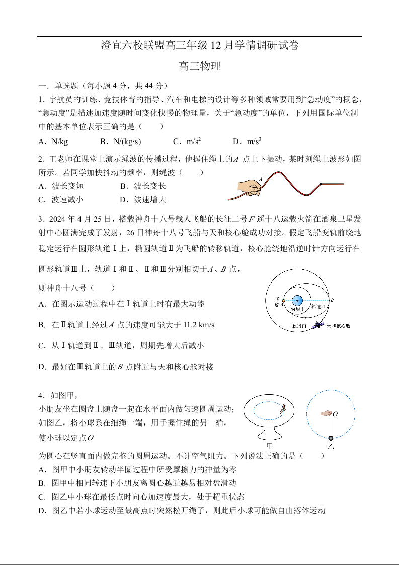 无锡市澄宜六校联盟2025-2026学年高三年级12月学情调研 物理.docx