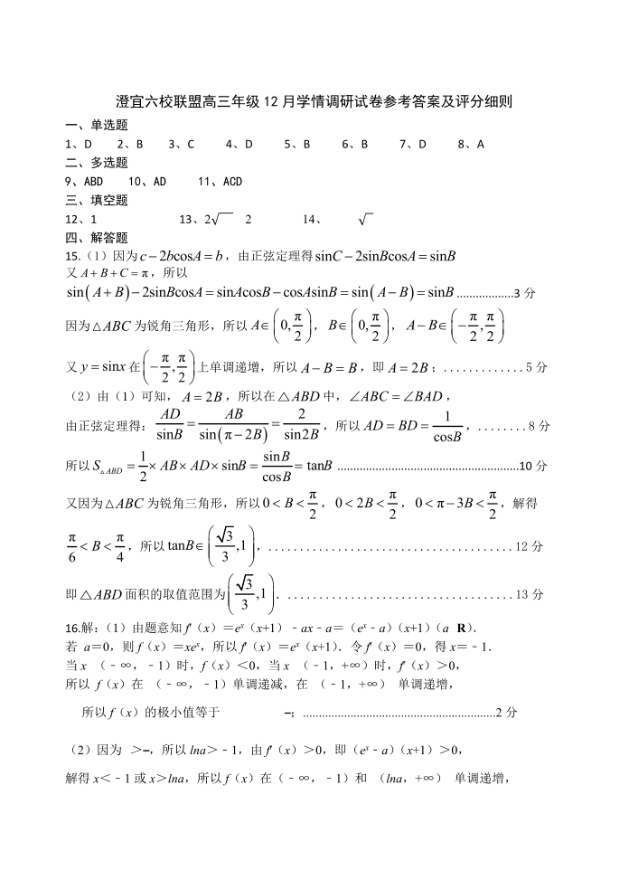 无锡市澄宜六校联盟2025-2026学年高三年级12月学情调研 数学答案.pdf