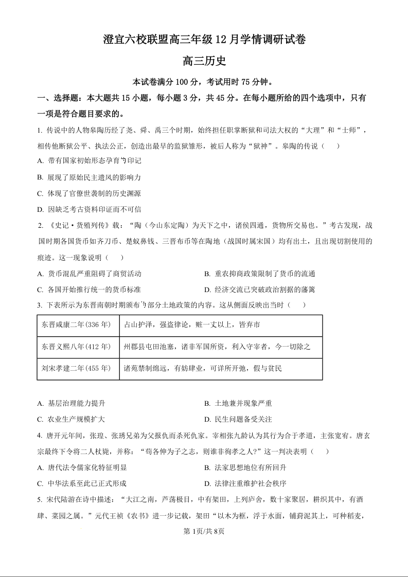无锡市澄宜六校联盟2025-2026学年高三年级12月学情调研 历史.docx