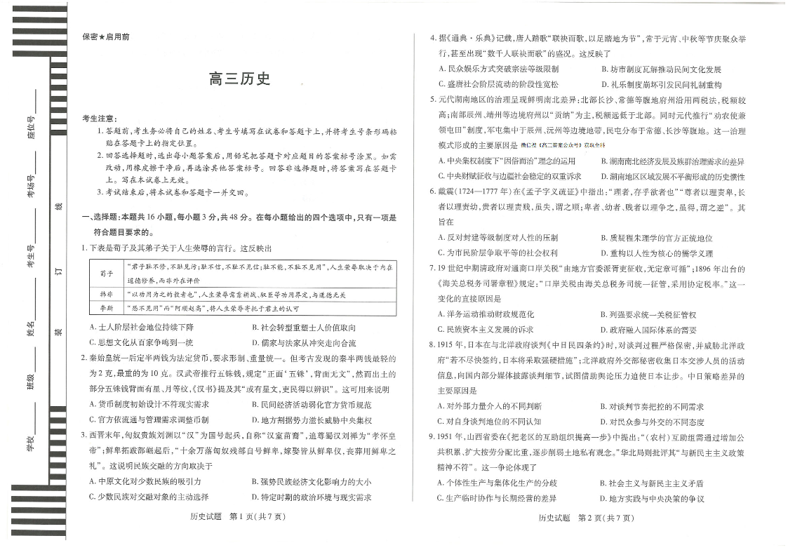 湖南省湘一名校联盟2026届高三上学期12月质量检测 历史.pdf