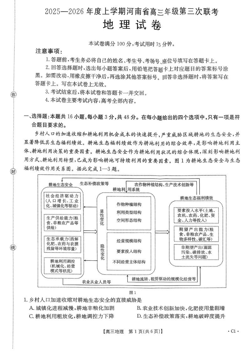 河南省2025—2026年度上学期高三年级第三次联考 地理.pdf