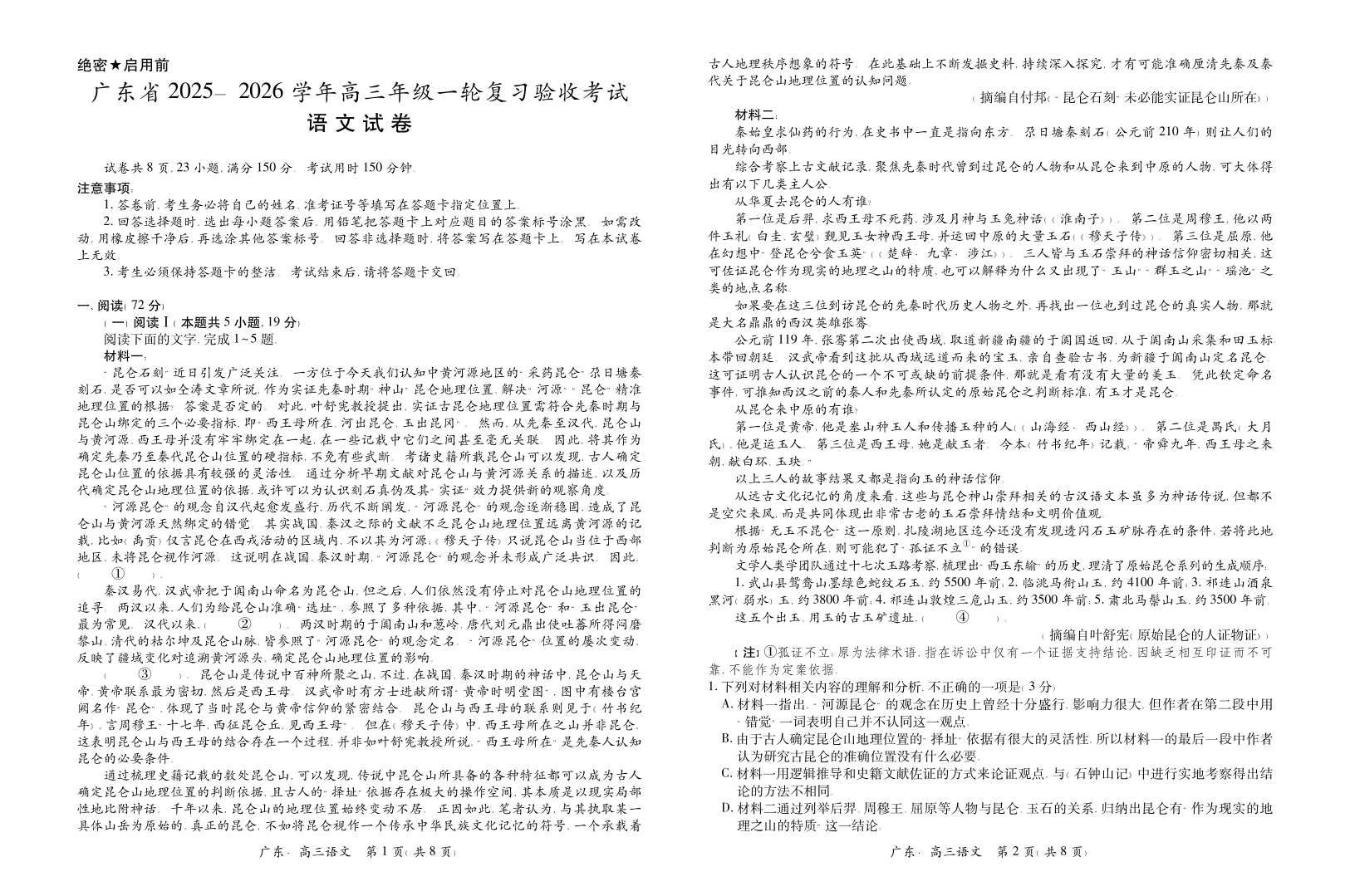 广东省2025—2026学年高三上学期一轮复习验收考试 语文.pdf