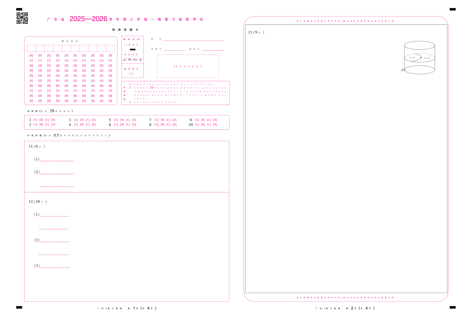 广东省2025—2026学年高三上学期一轮复习验收考试 物理答题卡.pdf