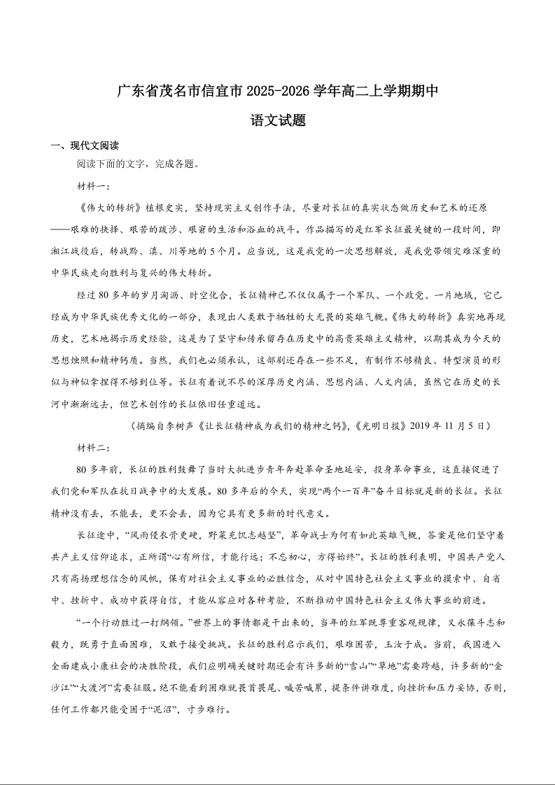 广东省茂名市信宜市2025-2026学年高二上学期期中考试 语文试题(含答案).docx