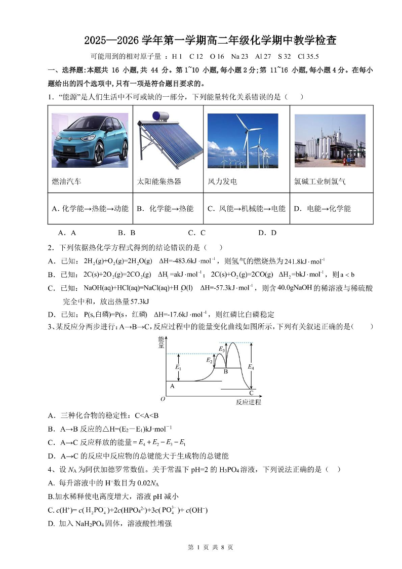 广东省茂名市信宜市2025-2026学年高二上学期期中考试 化学试题(含答案).pdf