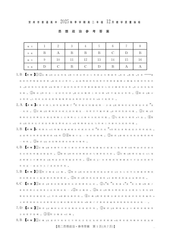 贺州市普通高中2025秋季学期高二年级12月教学质量抽检 政治答案.pdf