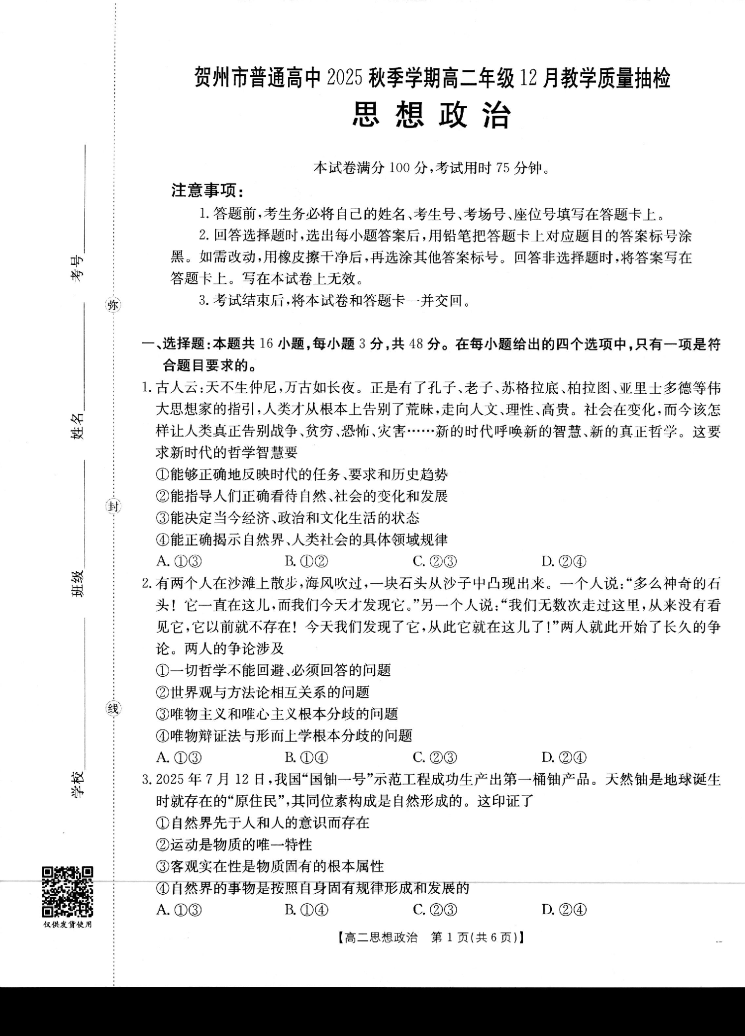 贺州市普通高中2025秋季学期高二年级12月教学质量抽检 政治.pdf