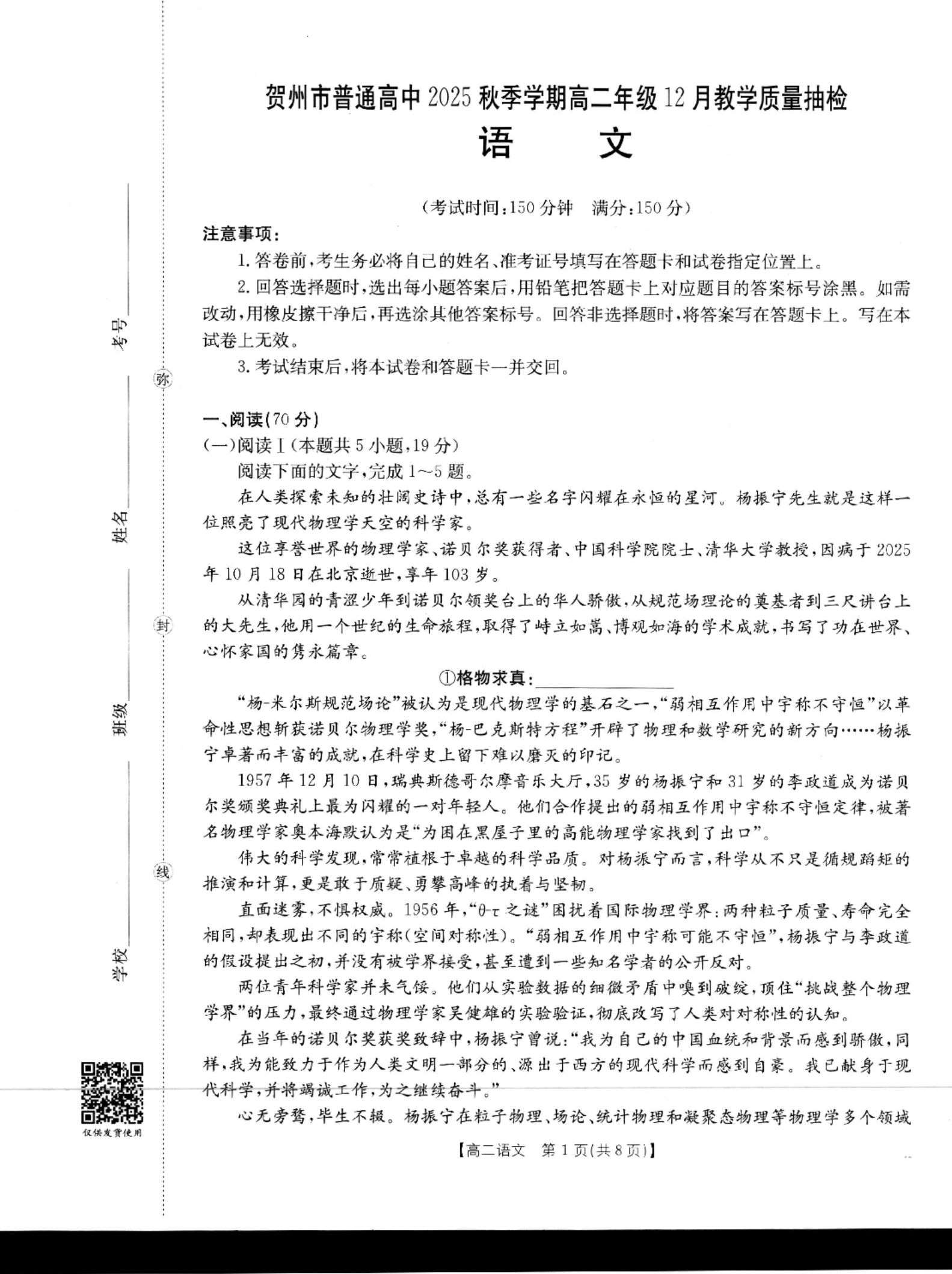 贺州市普通高中2025秋季学期高二年级12月教学质量抽检 语文.pdf