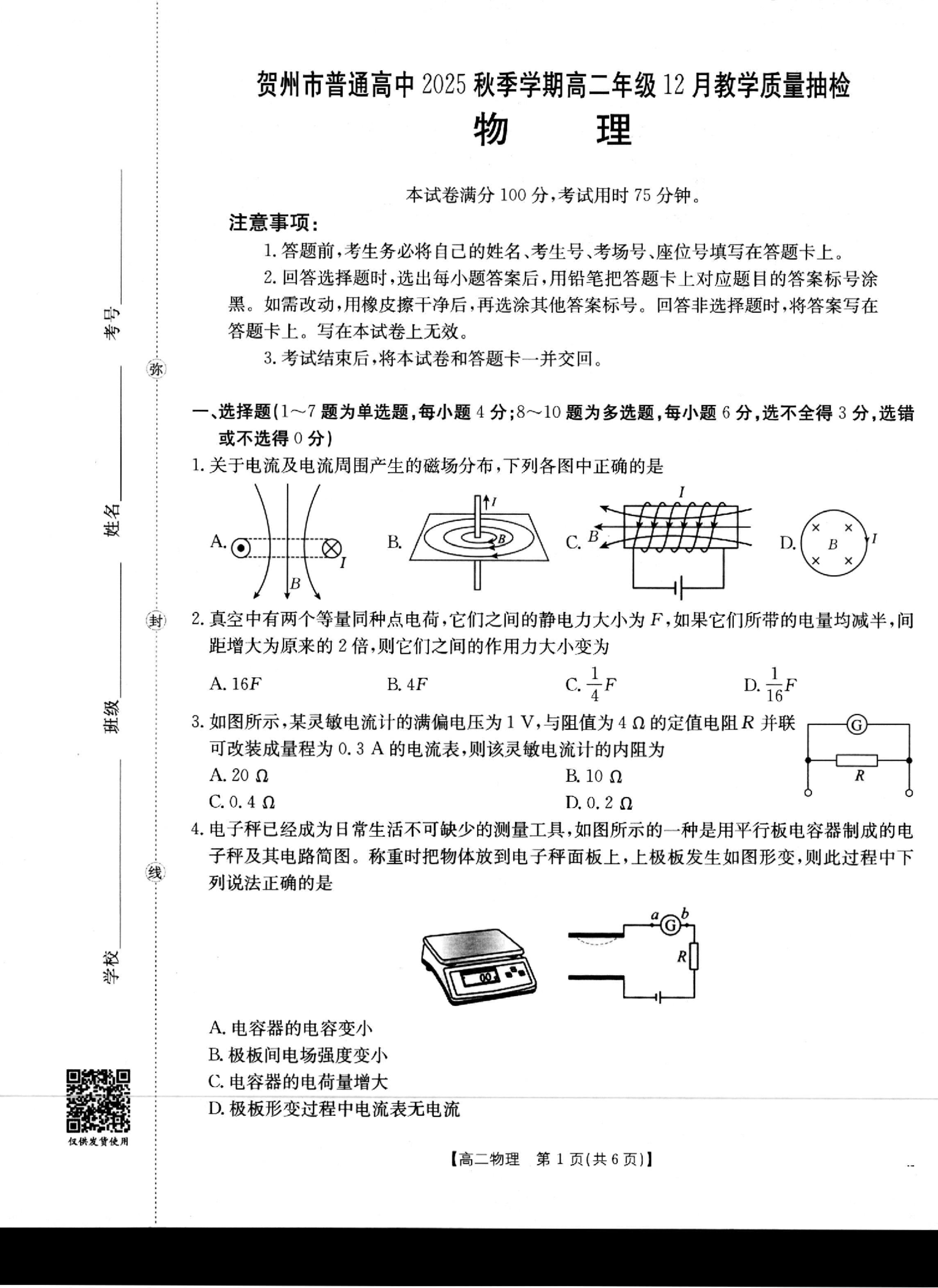 贺州市普通高中2025秋季学期高二年级12月教学质量抽检 物理.pdf