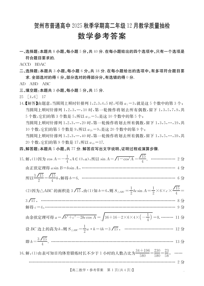 贺州市普通高中2025秋季学期高二年级12月教学质量抽检 数学答案.pdf