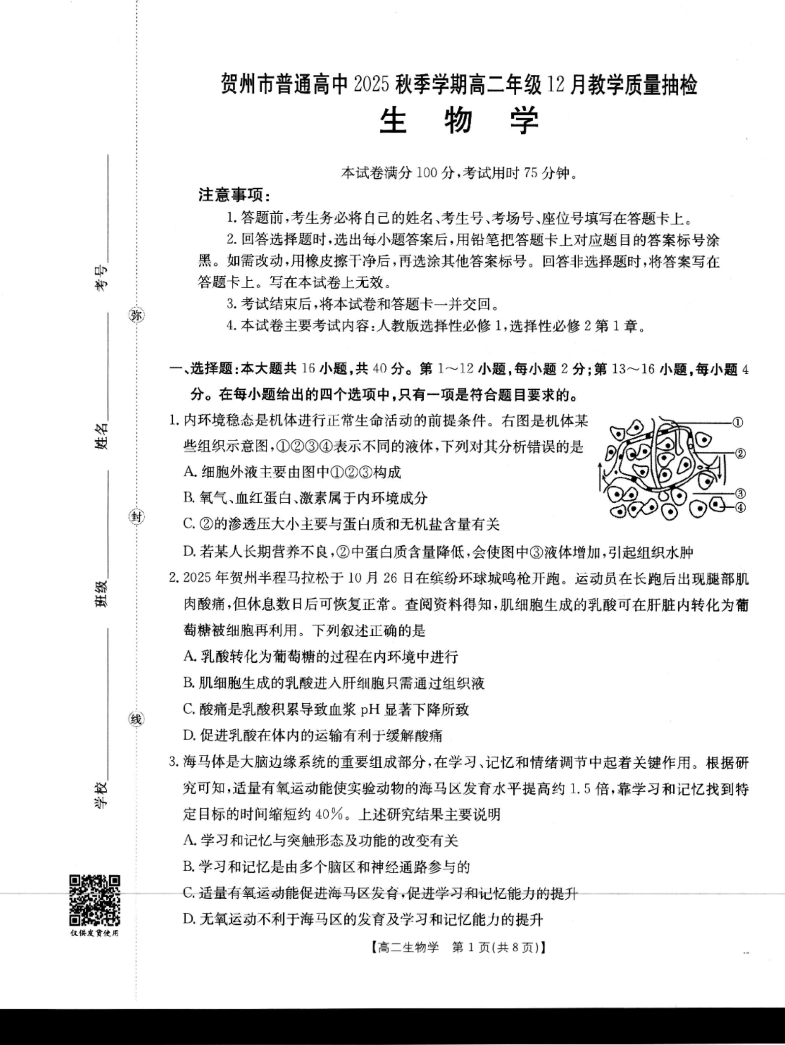 贺州市普通高中2025秋季学期高二年级12月教学质量抽检 生物.pdf