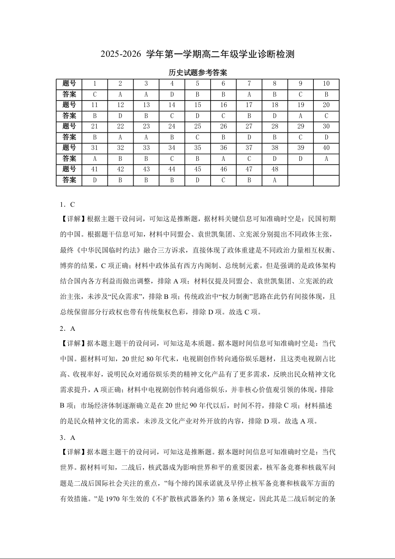 内蒙古自治区鄂尔多斯市第一中学2025-2026学年高二上学期12月月考 历史答案.docx