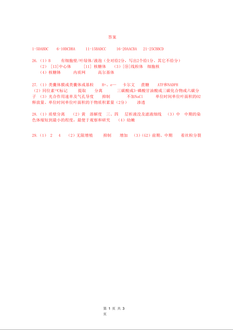 余姚中学2025学年第一学期高一年级12月质量检测 生物答案.docx
