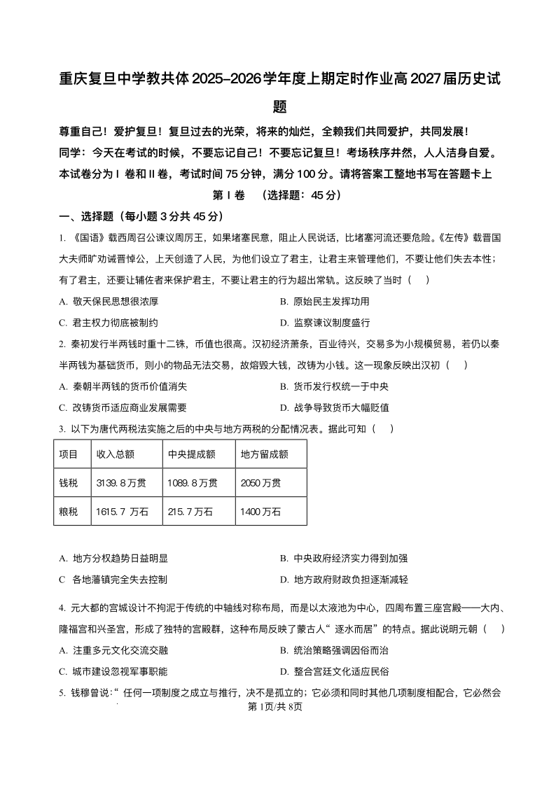 重庆市渝西中学2025-2026学年高二上学期12月月考 历史试题(含答案).pdf
