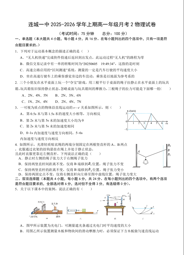 福建省连城县第一中学2025-2026学年高一上学期12月月考 物理试题(含答案).docx