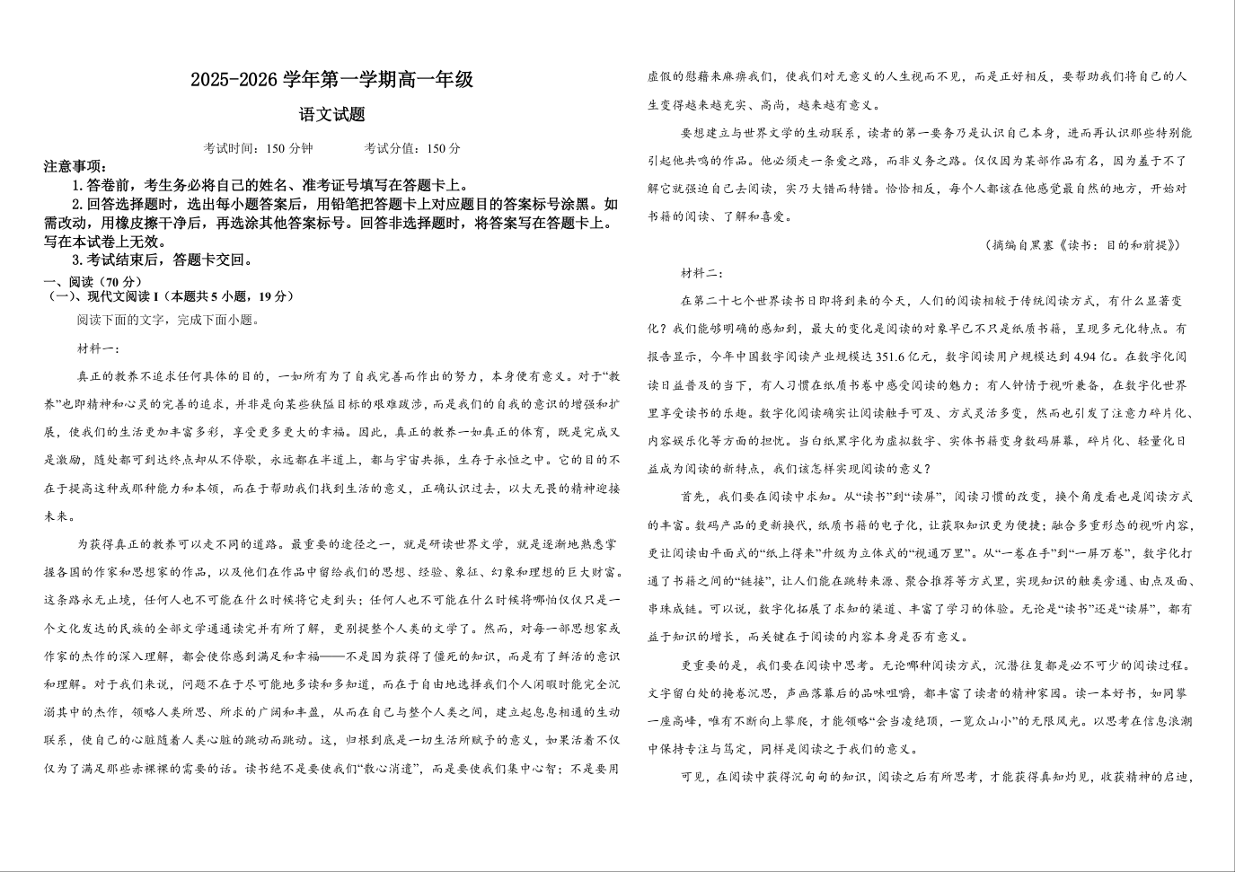 内蒙古自治区鄂尔多斯市第一中学2025-2026学年高一上学期12月月考 语文.docx