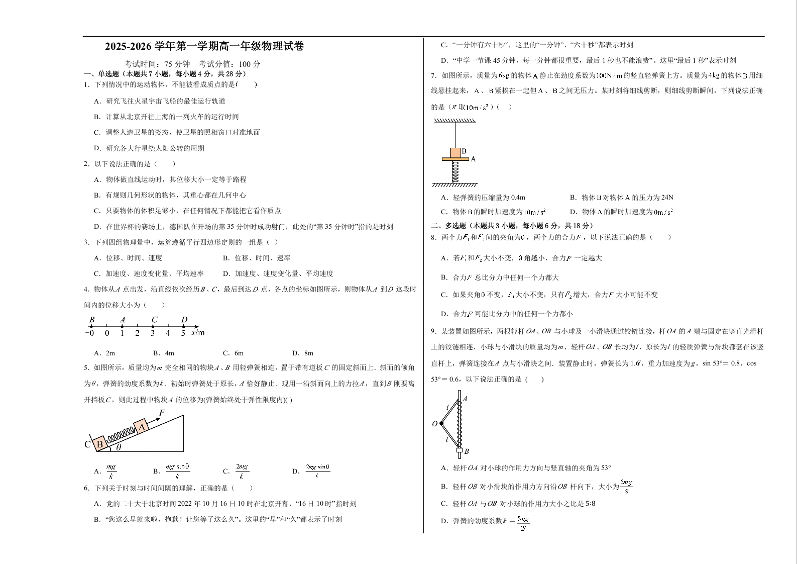 内蒙古自治区鄂尔多斯市第一中学2025-2026学年高一上学期12月月考 物理.docx