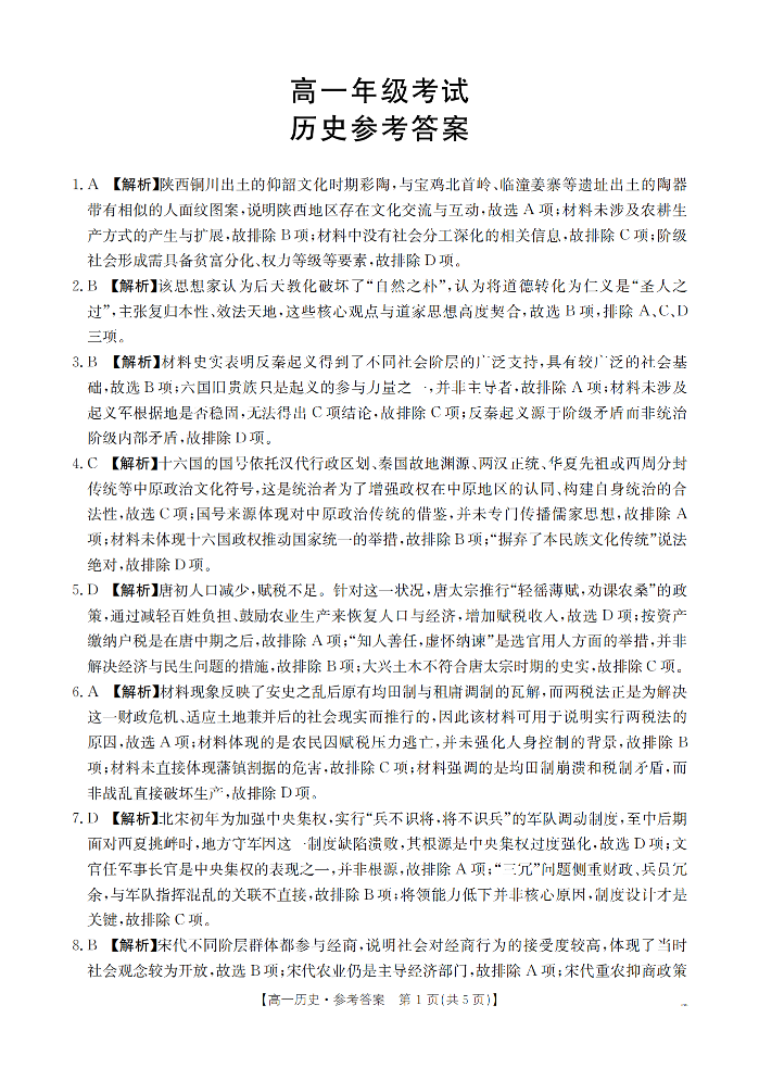 陕西省2025-2026学年高一上学期12月考试 历史答案.pdf