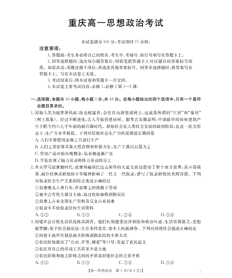 重庆市2025-2026学年高一上学期12月考试 政治.pdf