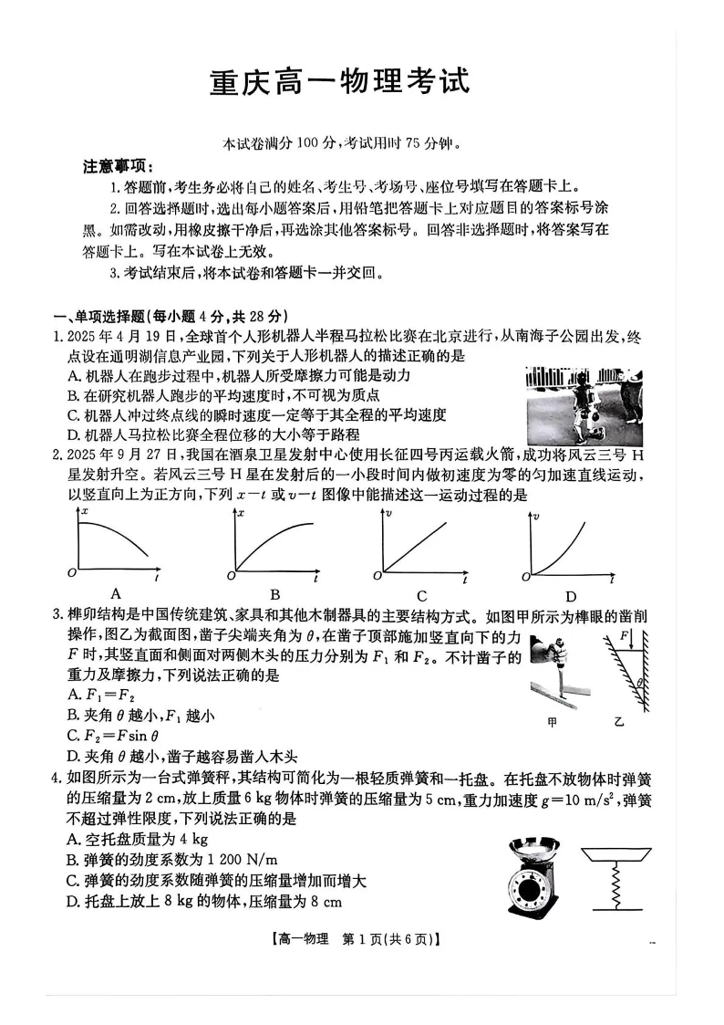 重庆市2025-2026学年高一上学期12月考试 物理.pdf