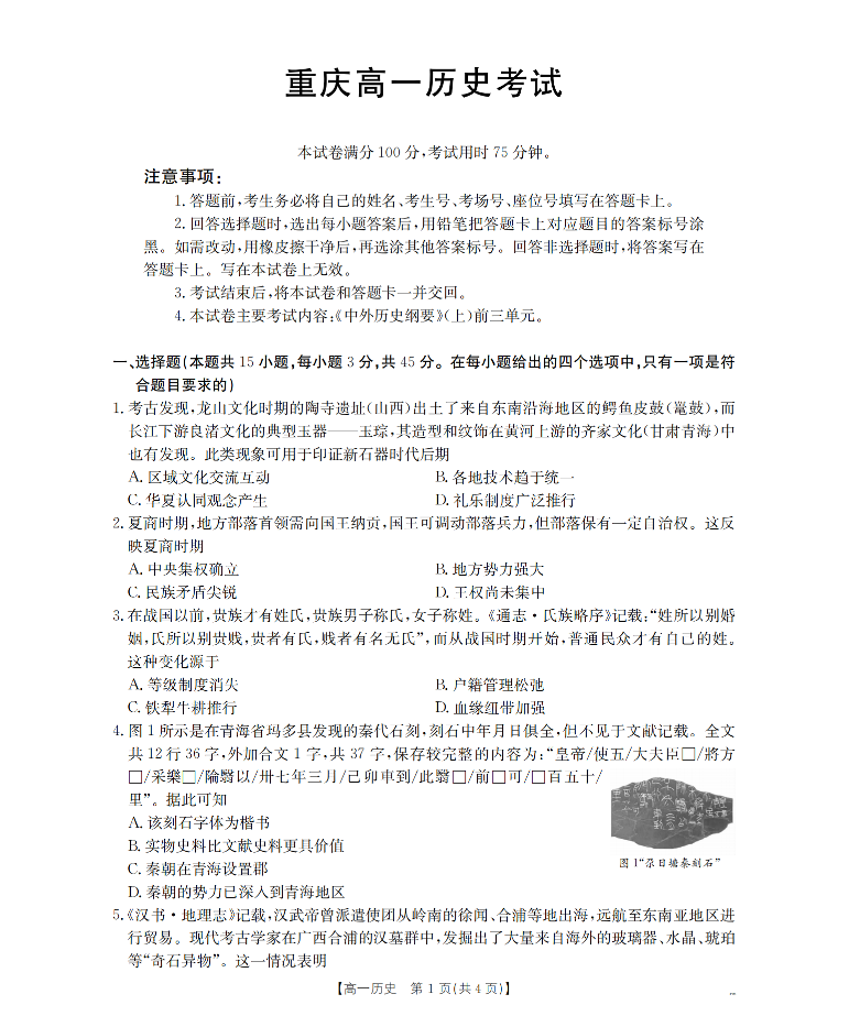 重庆市2025-2026学年高一上学期12月考试 历史.pdf