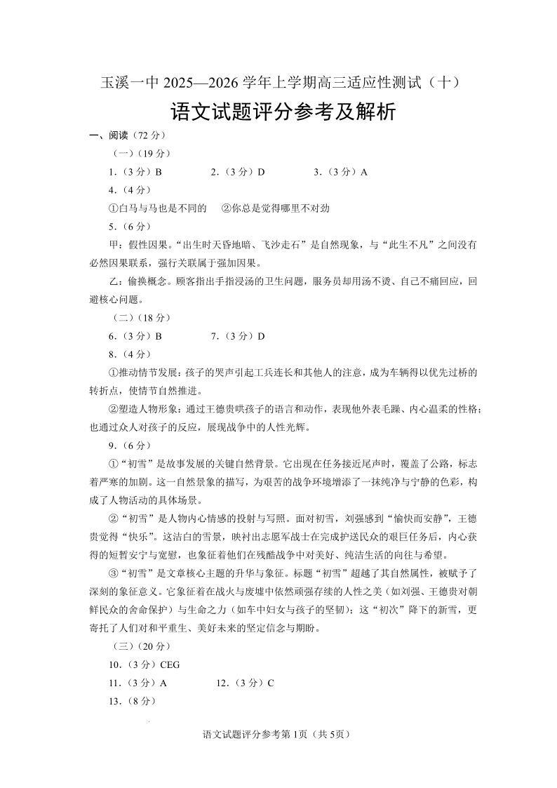 玉溪一中2025一2026学年上学期高三适应性测试(十)语文答案.pdf
