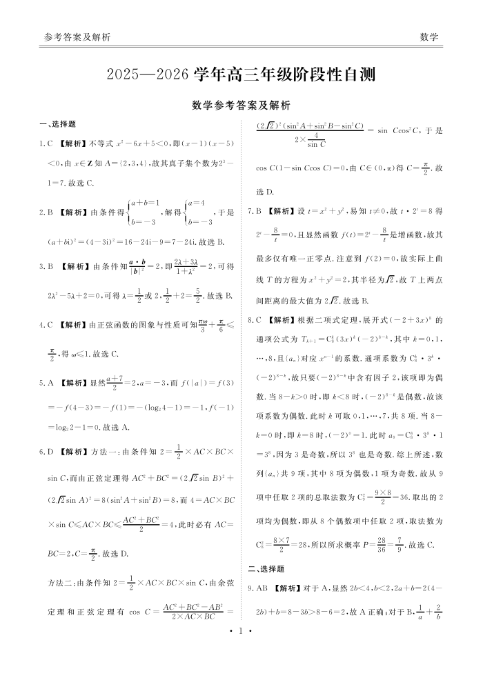 陕晋青宁衡水金卷2026届高三上学期12月阶段性自测 数学答案.pdf