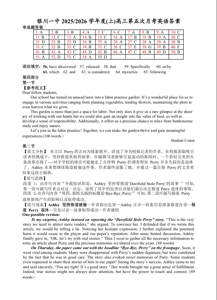 银川一中2024-2025学年高三上学期第五次月考 英语答案.docx
