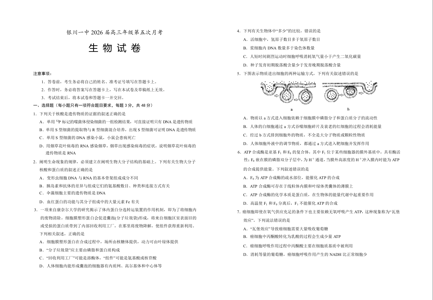银川一中2024-2025学年高三上学期第五次月考 生物.docx