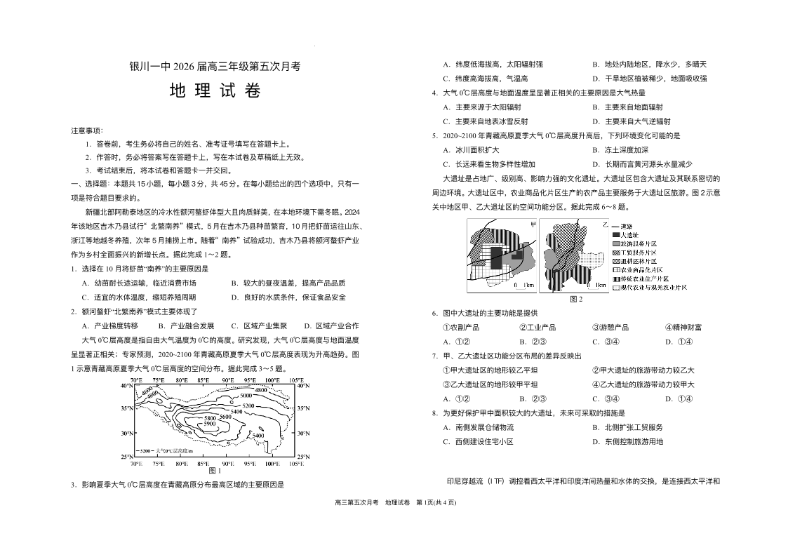 银川一中2024-2025学年高三上学期第五次月考 地理.pdf